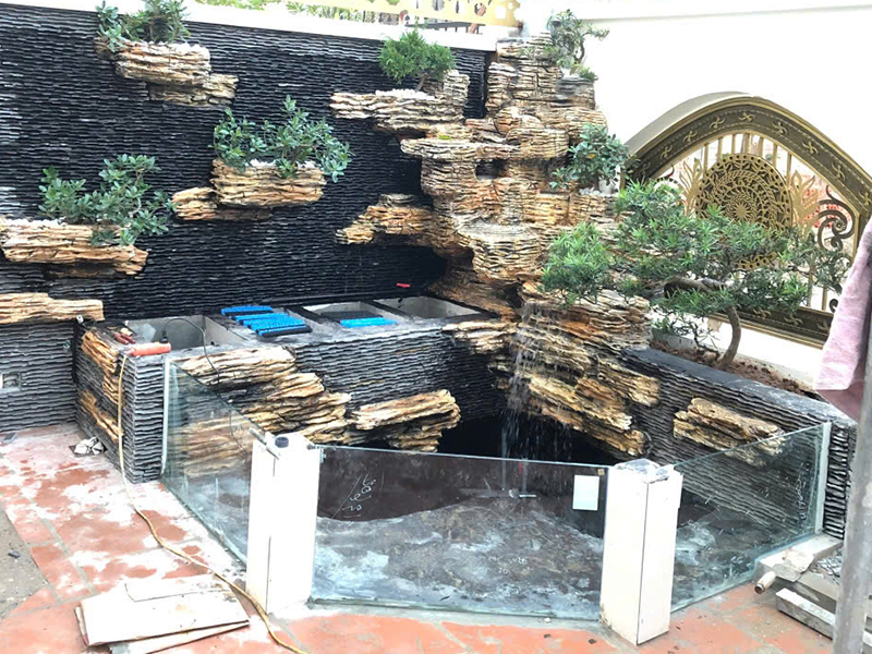 - Điểm nhấn: đá tảng – thác nước – bonsai – tượng trang trí